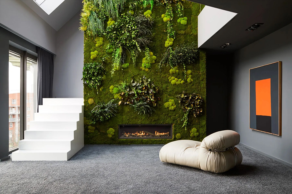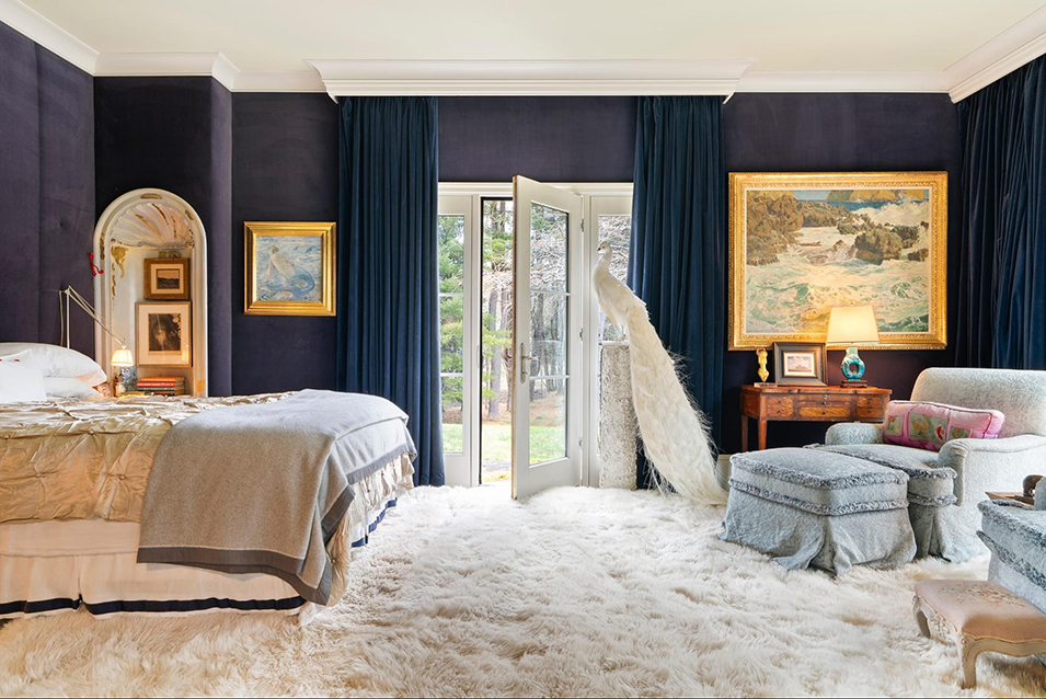 A surrealist interior should evoke a sense of fantasy and curiosity, and color is a useful tool in establishing that ambiance. Opt for vivid, unnatural hues or unusual combinations: deep purples, neon greens and metallics, for example, can create a dreamlike atmosphere. Meadow Wood, an elegant family home on a secluded reach of Massachusetts’ Green River, features walls painted in unexpected colors and fantastically patterned wallpaper to create a backdrop that feels otherworldly.