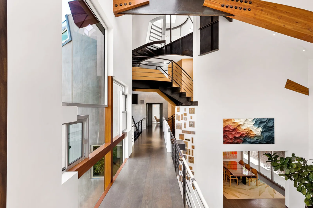 Conspicuously original homes, like this modern masterpiece, uphold the legacy of the ’70s. Dynamic split-level architecture allows for unique spaces and unusual dimensions to unfold within the home; they can be styled as self-contained havens or curated alongside one another in compelling continuities. Bold hues and mixed materials pay additional homage to the “‘Me Decade.”