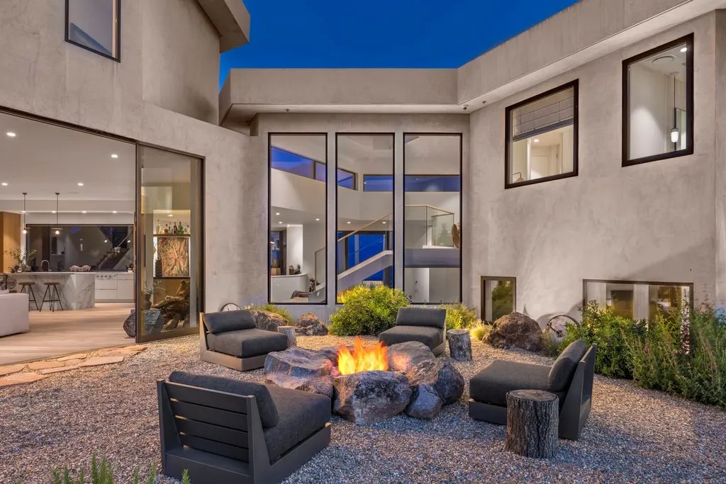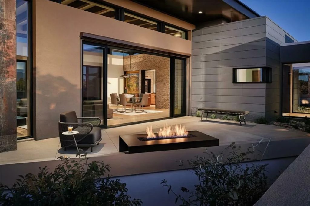 An alfresco fireplace or fire pit helps create an exceptionally warm and welcoming ambience in any open-air space, whether it’s a contemporary terrace with dramatic mountain views or a Mediterranean-inspired poolside patio.