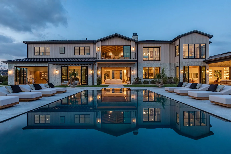 On just over two acres on a coveted cul-de-sac in Hidden Hills, on the outskirts of Los Angeles, this meticulously constructed new 16,112-square-foot residence recalls both a rustically refined California spa and a bucolic pastoral oasis.