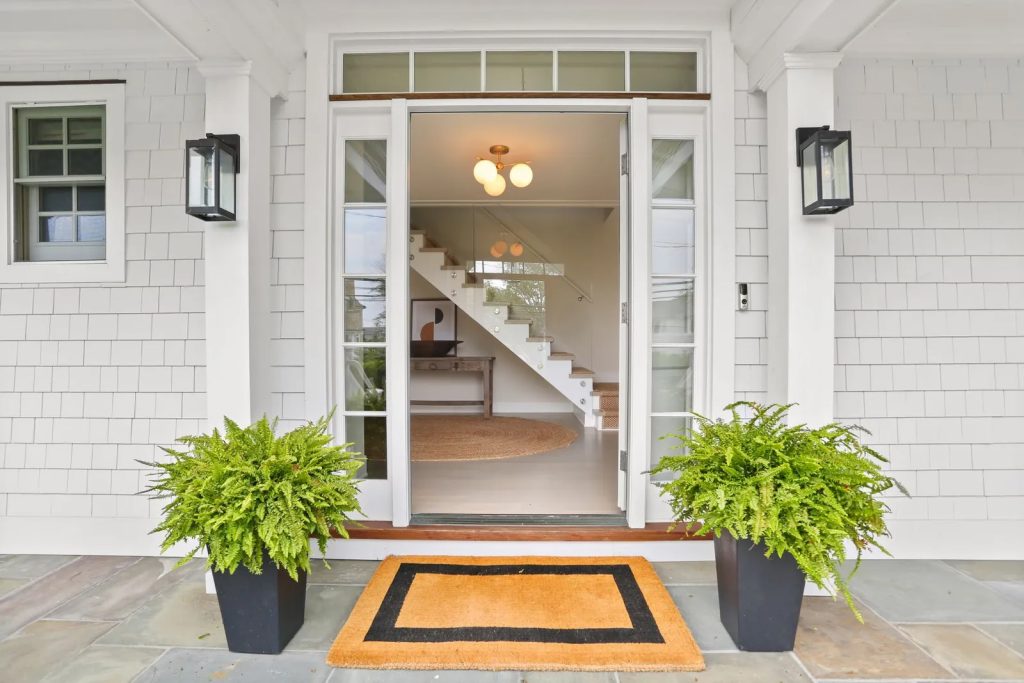 This 5,904-square-foot home—elevated above the flood line, making it a compliant property—offers a rare opportunity to enjoy a picture-perfect coastal lifestyle. It has been thoughtfully renovated and expanded, resulting in consummately contemporary spaces with clean lines, walls of windows and glass, and a sophisticated, soothingly organic minimalist palette. A spacious foyer with a powder room introduces the home and leads to each of the main living and entertaining spaces: a chef’s kitchen with a roomy center island, counter seating, wine storage, and stainless-steel appliances; a lovely living room anchored by a regal fireplace and opening to a covered portion of the deck; and a spacious formal dining room with a folding wall of glass giving way to an alfresco dining area.