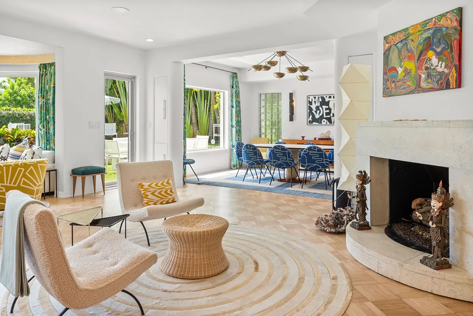 Painstakingly renovated in recent years, the landmark residence boasts an array of light-flooded spaces, including an open living and dining room, a semicircular sitting bay, a spacious family room, and six versatile bedrooms—those on the upper level enjoying terrace access. Throughout, oversized windows offer views of the surrounding greenery and the sparkling waters of Lake Worth, creating spaces where sophisticated living and entertaining can unfold with utmost ease. Cooks will relish the marble-clad kitchen, equally bright and featuring an island and top-caliber stainless-steel appliances.