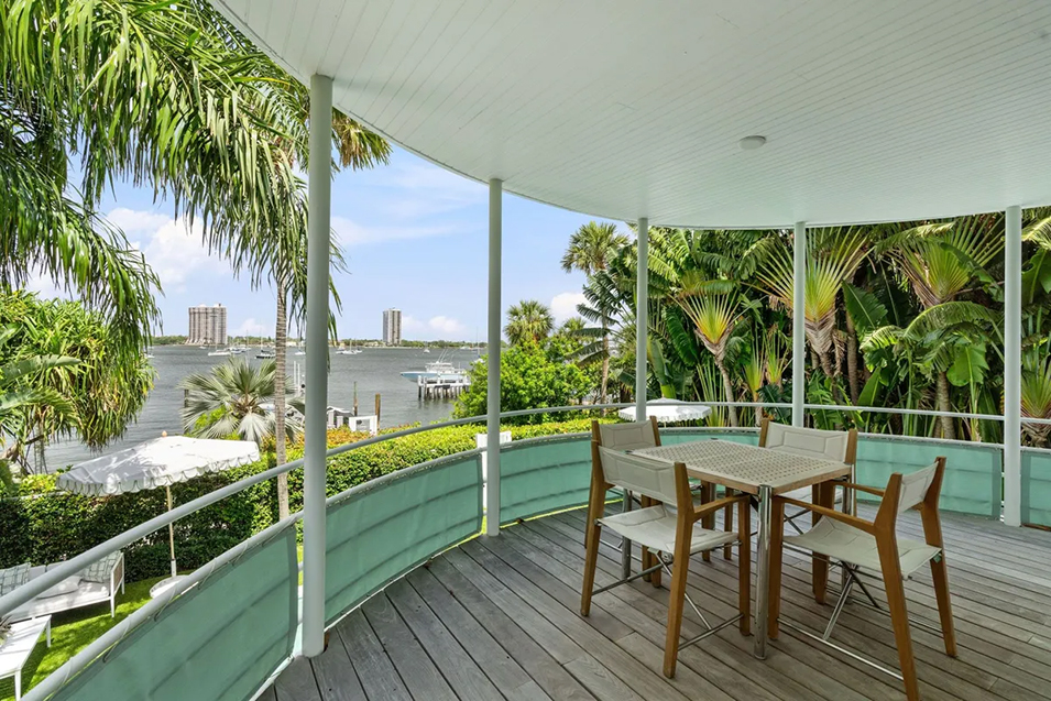 A lodestar of mid-20th-century architecture, Art Moderne brought the world an aesthetic more streamlined than its opulent cousin, Art Deco. The style distinguished itself with a generous use of glass, steel, and concrete; low-slung flat rooflines; horizontal, often-symmetrical silhouettes; rounded corners; smooth white walls; and wraparound, glass-block, and porthole windows. That this aesthetic—practically epitomized by this 4,848-square-foot home built in 1940 on the lakeshore in Palm Beach—remains appealing is a testament to Art Moderne’s enduring, timeless nature.
