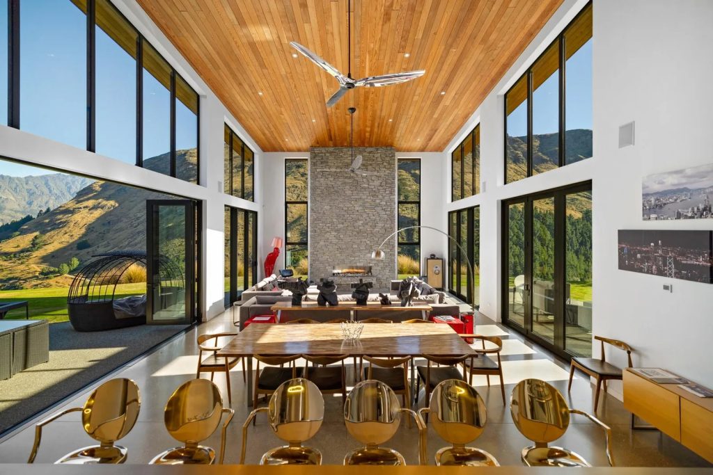 The living area in the Queenstown house is like an atrium, and there’s plenty of room for guests.