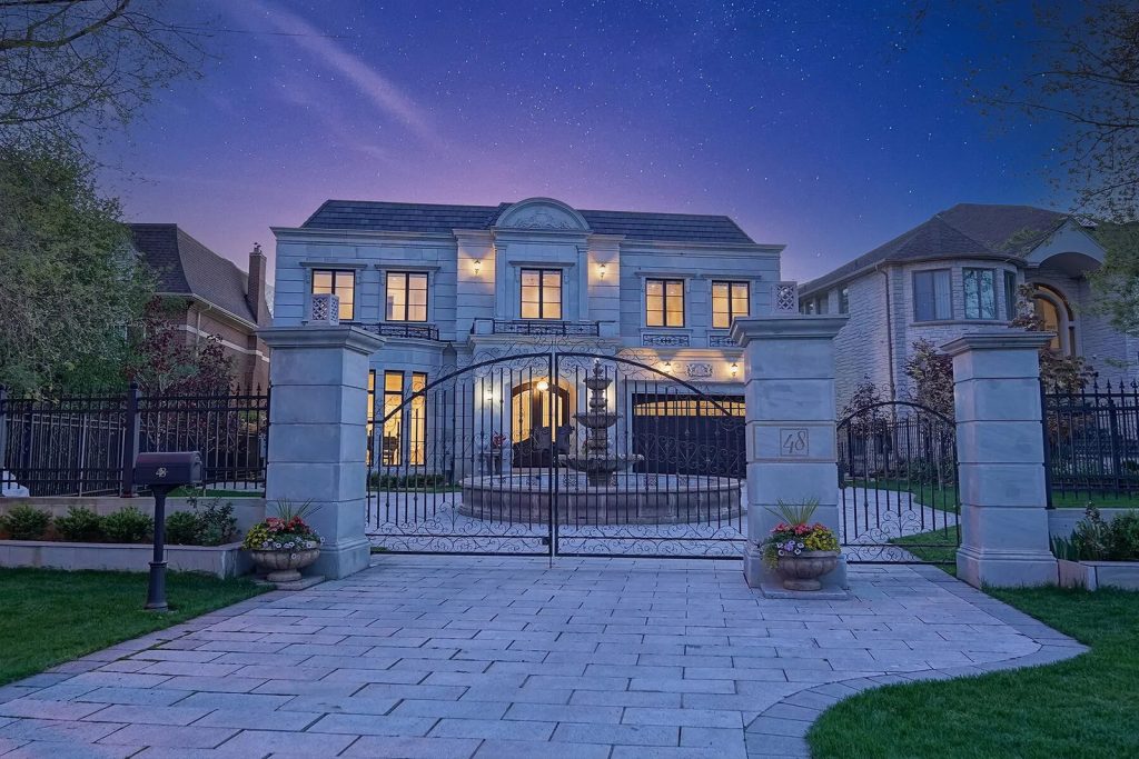 48 Arjay Crescent boasts an exquisite setting overlooking 15 acres of golf course, lush landscaping, and a serene pond. Located in the prestigious Bridle Path enclave, the home is adjacent to the Granite Club, and minutes from fine dining and top schools like Havergal College and York Mills Collegiate Institute. The property features an indoor pool with a hot tub, fountain, drink bar, sauna, a heated basement with a gym, theater, wet bar, wine cellar, and nanny’s quarters. Designed by architect Richard Wengle, the home showcases imported marble, granite, and onyx, and offers a tranquil west garden.