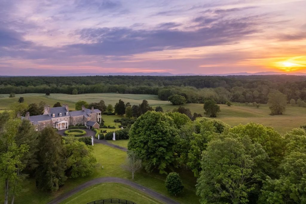 North Wales, a magnificent estate established circa 1713 in Fauquier County, offers unparalleled seclusion with approximately 1,482 acres of rolling fields, forests, and lush formal gardens. Originally built circa 1776 and expanded in the early 1900s by renowned architects Arthur Little and Herbert W.C. Browne, the historic Georgian-style manor house boasts 22 bedrooms, including 12 staff quarters. Grand living, dining, and ballrooms make the home ideal for entertaining, while the estate’s design emphasizes privacy and offers stunning views.